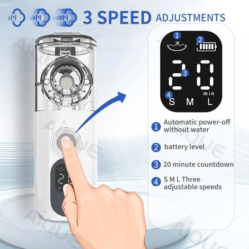 Permite escolher a intensidade da nebulização conforme a necessidade, oferecendo mais controle durante o uso.